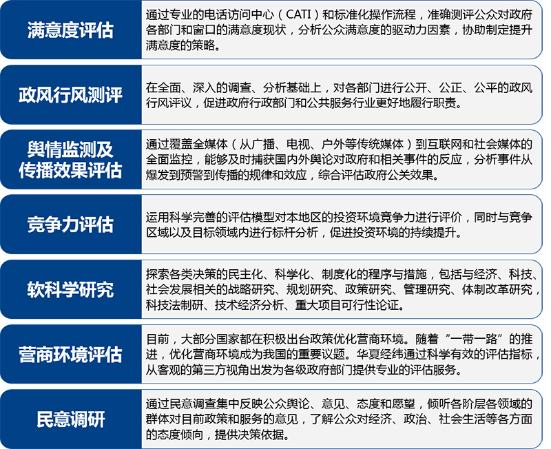 華夏經(jīng)緯可以為各級(jí)政府部門(mén)提供以下方面的研究咨詢服務(wù):