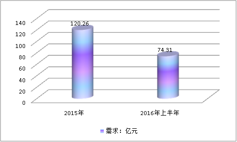 根據(jù)華夏經(jīng)緯市場(chǎng)調(diào)查公司近當(dāng)年發(fā)布的市場(chǎng)調(diào)研報(bào)告數(shù)據(jù)顯示,2015年國(guó)內(nèi)錦綸工業(yè)長(zhǎng)絲產(chǎn)品供給能力為125.08億元,到2016年上半年產(chǎn)品市場(chǎng)供給能力達(dá)80.02億元。2015-2016年錦綸市場(chǎng)需求分別為120.26億元,到2016年上半年市場(chǎng)需求量為74.31億元。