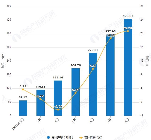 2019年1-8月湖南省飲料產(chǎn)量及增長情況